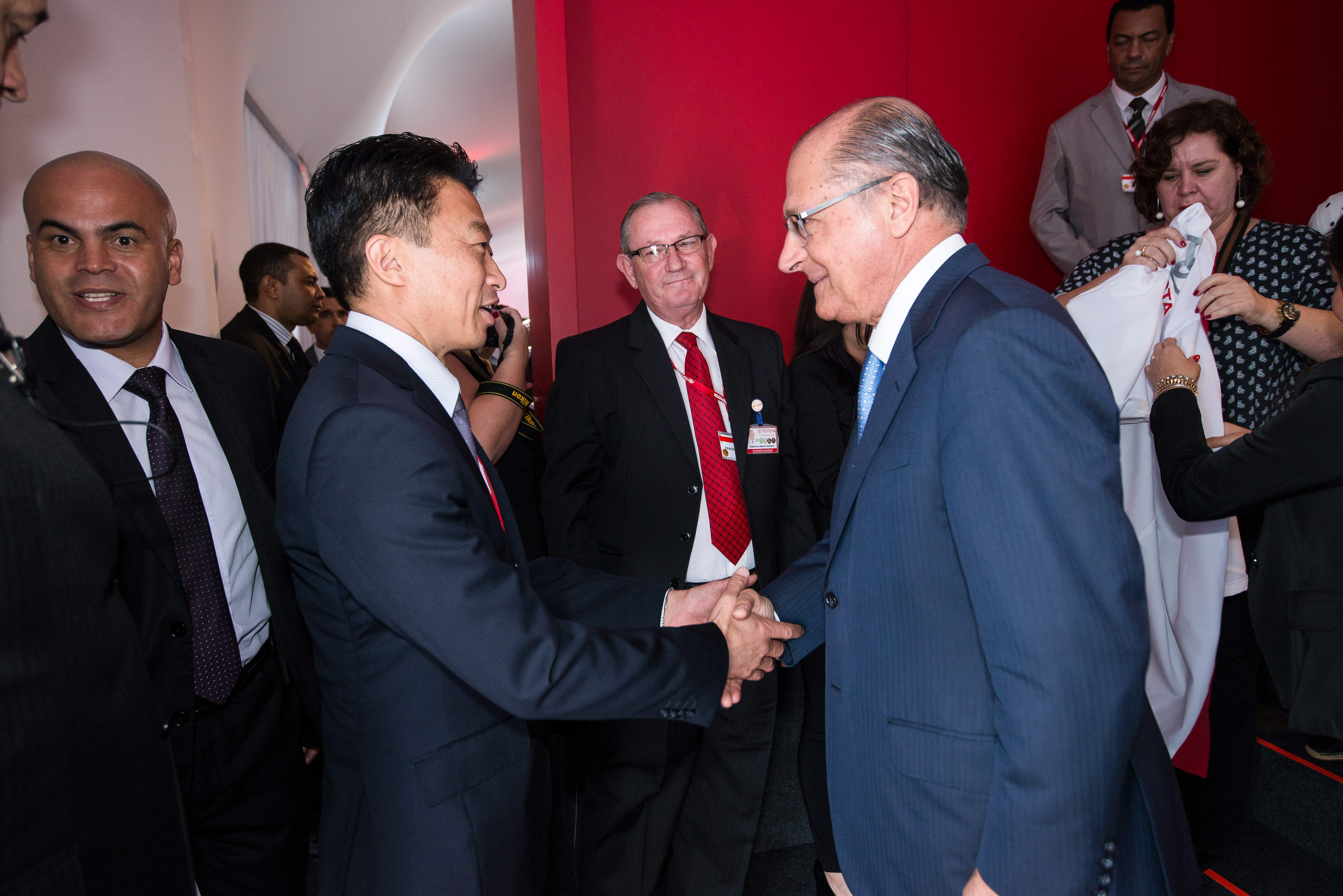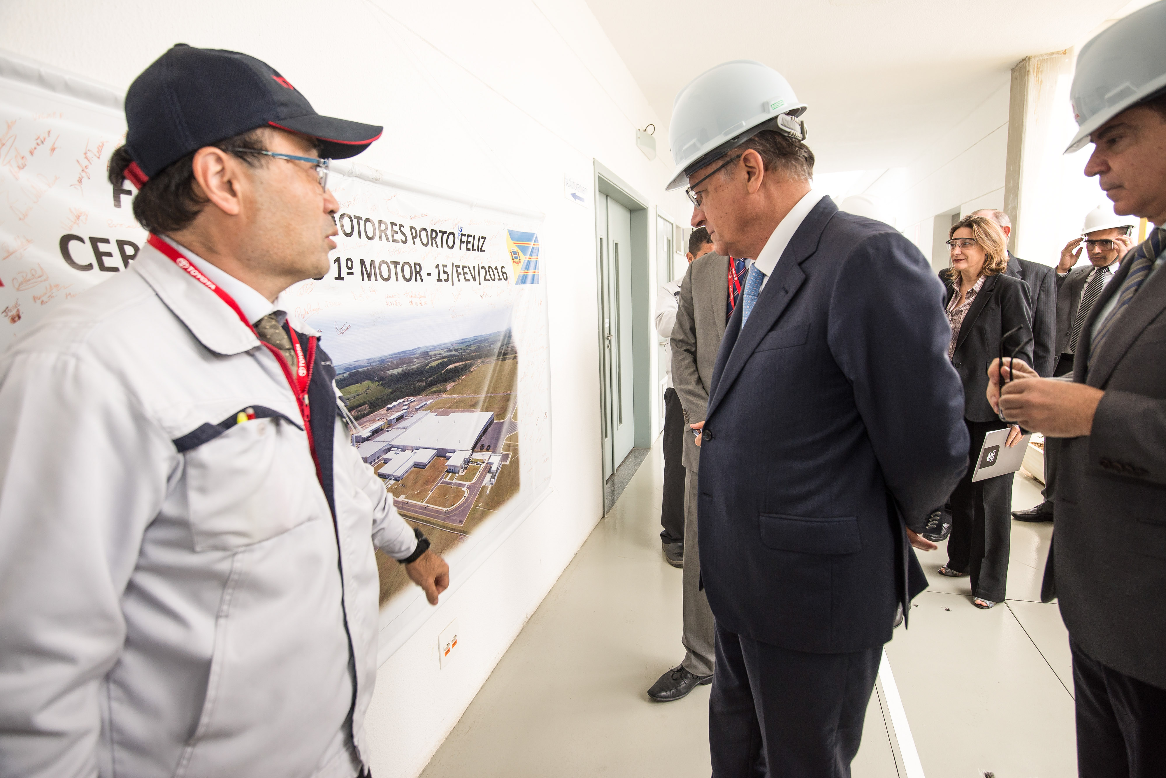 2014年のSP州知事選挙で再選を果たし、昨年から向う4年間に亘って続投続けるアルキミン知事は感慨深く祝辞を述べ「TDBはこのポルト・フェリス市に5億8千万レアイスを投じ、320人を雇用するエンジン工場を建設した。トヨタが海外第1号の工場をサンべルナードに建設したのが1958年、40年後の98年にインダイヤツーバ工場でカローラ車を生産、ソロカバ工場ではエティオス車、そしてこのポルトフェリス市にエンジン工場を建設、またサンべルナルドにおいては研究開発(R&D)センターを設置、ブラジル経済とりわけ南米ではブラジルに次ぐGDPを誇るSP州に大きく貢献している」と称賛した。