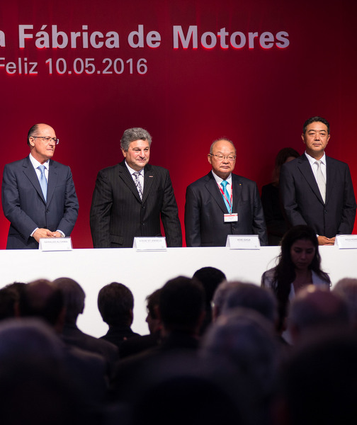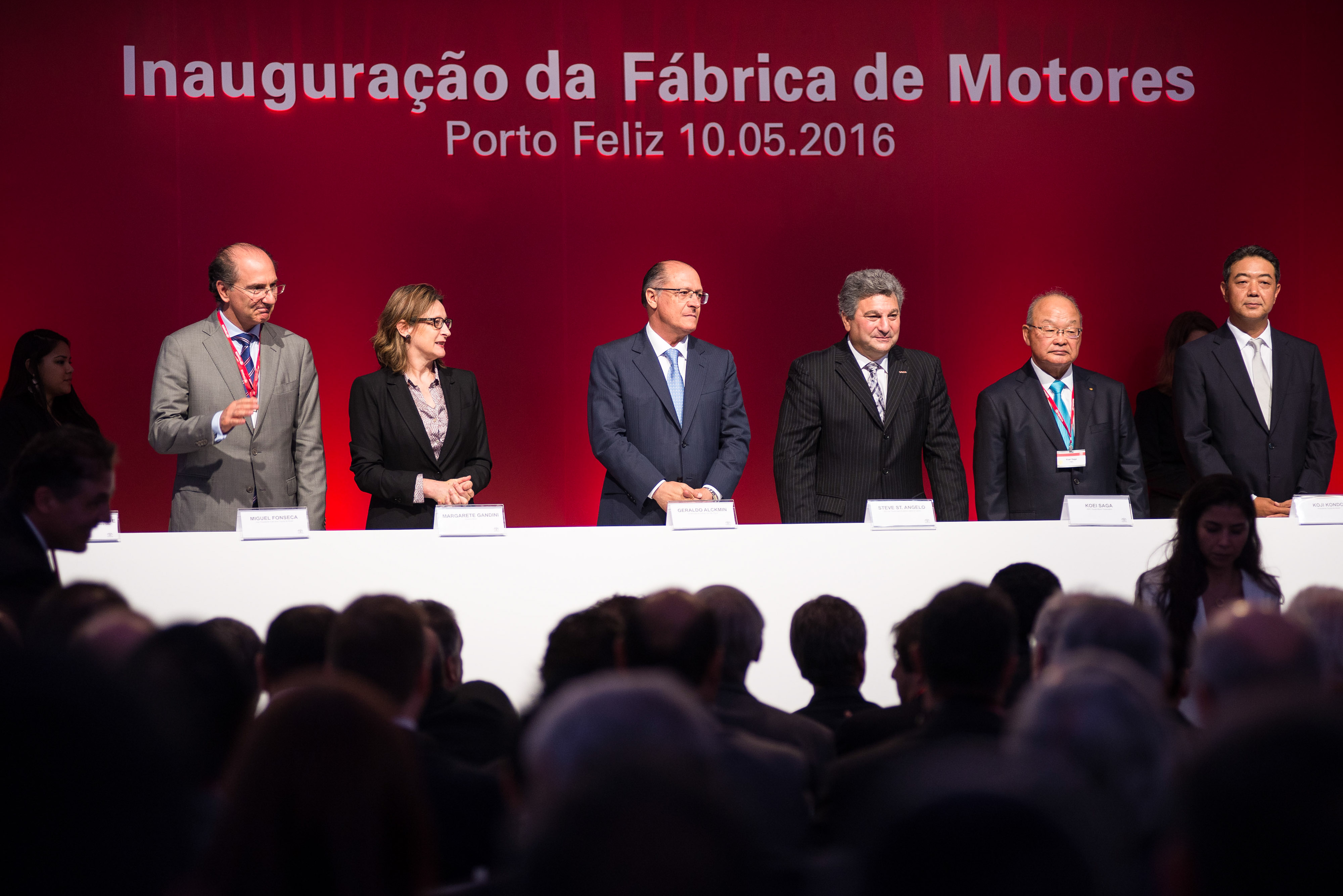 その当時の竣工式で、アルキミン サンパウロ(SP)州知事と同州政府投資誘致機関(Invest Sao Paulo)の総裁や来賓を前にソロカバ近郊のポルト・フェリス市に年産20万台規模のエンジン工場建設(約10億 レアルの投資額)にあたってインテンション・プロトコールに調印したのはまだ記憶に新しい。