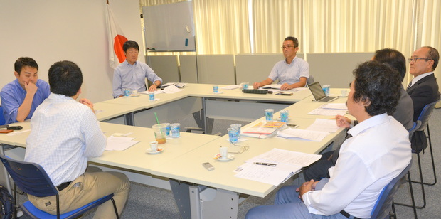 参加者は矢部健太郎副委員長(ブラジル三井物産)、 井上徹哉副委員長 (ジェトロ)、武藤元副委員長(ブラジルBTMU)、 宮本英威氏(日本経済新聞社)、平田藤義事務局長、日下野成次総務担当、大角総丙編集担当