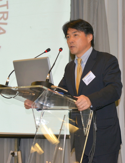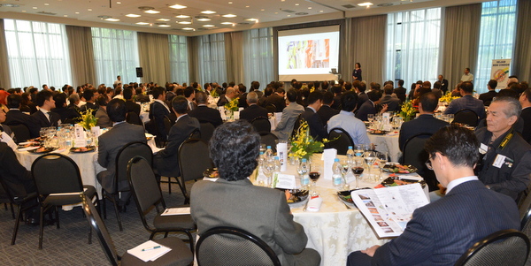 続いて特別ゲストとして中前 隆博 在サンパウロ日本国総領事/ブラジル日本商工会議所名誉顧問並びにアンジェラ・平田 ジャパン・ハウス事務局長が紹介された。中前 隆博総領事は、昨年はいろいろな政治事件が立て続けに発生、容易ではなかったが、ブラジルは最近半年ほどで経済・財政改革につながるような政策的に悪循環から好循環に潮流が変わってきている。正しいブラジルの現状を伝えることは重要であり、ビジネス環境整備にお手伝いしたいので要望を出してほしいと述べた。