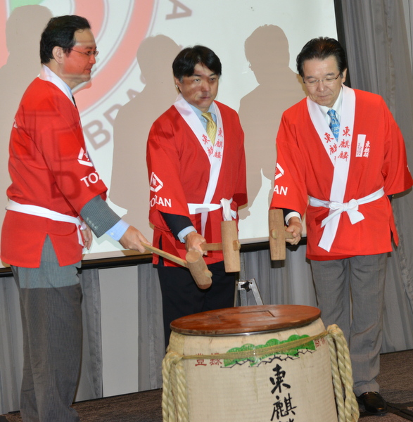 鏡開きは土屋副会頭の音頭で松永会頭、中前総領事、土屋副会頭が行った。着任挨拶では、TOYOTA DO BRASIL LTDAのラファエル・チャン氏は、今年1月から近藤社長の後任として社長に就任、生まれはペルーでブラジルは4か国目の勤務地であり、近藤前社長から会議所活動に積極的に参加すること念を押されたと説明。KPMG AUDITORES INDEPENDENTESの吉田 幸司氏は、兵庫県出身で2007年から2001年までメキシコ勤務、2016年12月からサンパウロ勤務で南米の日系進出企業をサポートすると説明。JCI Brasil-Japão (青年会議所)のマルシア・マリコ・ナカノ新会頭は、サンパウロ大学医学部出身、2月6日に予定されている会頭就任式への参加を招待した。