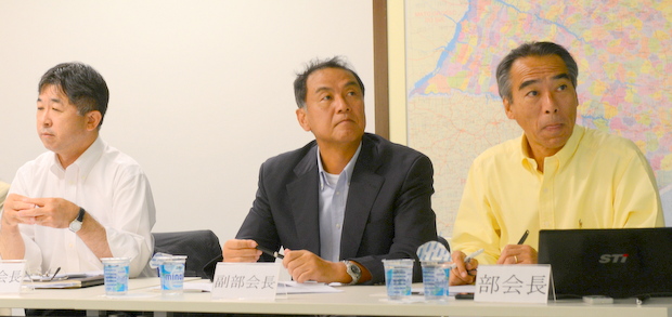 左から細谷副部会長(日通)/川手副部会長(NYL Line)/森田部会長(山九)