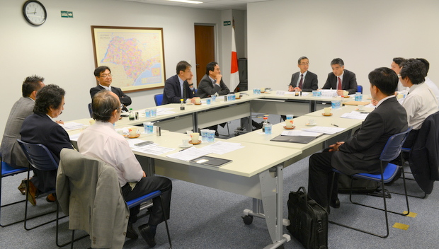 参加者は酒井新部会長(東京海上)、加藤副部会長(みずほコーポレート銀行)、山崎前部会長(ブラデスコ銀行)、高橋前副部会長(ブラデスコ銀行)、遠藤氏(南米安田保険)、横路氏(イタウー銀行)、村田氏(ブラジル三菱東京UFJ銀行)、川原氏(ブラジル三菱東京UFJ銀行)、原氏(ブラジル三井住友保険)、遠藤副領事(サンパウロ総領事館)、平田事務局長、大角編集長