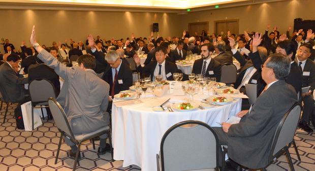 帰国挨拶ではTOKIO MARINE SEGURADORA S.A.の酒井 浩一郎社長は2013年1月に来伯、2年3か月勤務して有意義な駐在員生活ができたと述べ、後任の石丸 正剛 社長は酒井社長を跡をついで頑張りたいと述べ、MITSUI CHEMICALS DO BRASIL COMÉRCIO LTDAの岡部 雅行社長は5年間勤務、自動車用のプラスティックや農薬に投資、日本では研究所勤務であると説明、後任の田中 慶太郎社長は多くの人と知り合いになりオールジャパンで協力したいと述べ、MITUTOYO SUL-AMERICANA LTDAの)水谷 隆社長は2005年に着任、10年間勤務、4月に本社勤務になると説明、後任の井上 正志 社長は結果を出すために頑張りますと宣言、PANASONIC DO BRASIL LIMITADAの村上 廣高社長は3年前に来伯、法律委員長や電気電子部会長を務め、また白物家電の工場を立ち上げたが、わが社の洗濯機や冷蔵庫を餞別の意味で買ってくださいと述べ、後任の松下 理一 社長はブラジルは規制が多く驚いているが、2016年のリオのオリンピックは微力ながら協力したいと述べ、YASUDA MARÍTIMA SEGUROS S.A.の奥村 幹夫社長は1年で帰国するが後任はブラジルでの経験が長い安田 篤 社長ですと紹介、後任の安田 篤 社長4回目のブラジル駐在、日系コミュニティに積極的に参加したいと述べた。