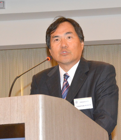 懇親昼食会を前に第65回定期総会が開催され、2014年度事業・収支決算報告書、2015年度事業・収支予算計画書の報告が村田俊典新会頭並びに内山元雄財務委員長により行われ、また2014年度監事意見書が中村敏幸元監事会議長から報告され、最後に村田俊典新会頭が挙手による承認を確認、村田俊典新会頭は所信演説を下記のように発表した。(総会資料:2014年度事業報告書 )