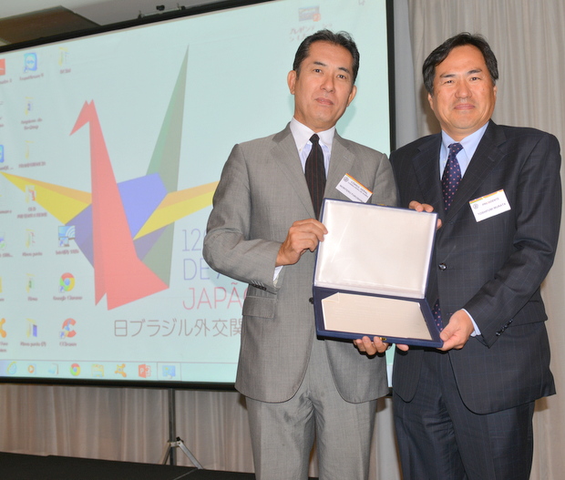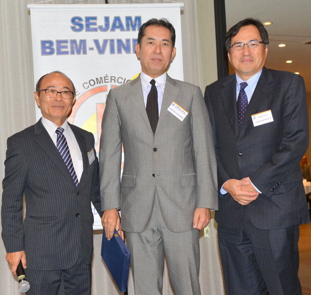 JICAブラジル事務所の室澤 智史所長は、2011年11月から2回目のブラジル勤務でトータル7年5か月間勤務、会議所活動として機能強化委員会のインフラWG長を務め、民間企業の中南米の投資促進するスキームを構築して日系社会と民間企業をつなぐ関係強化に協力しており、日系企業が築いた資産を大切にしてウインーウインの関係を築いてほしいと説明、遠藤聡副領事は着任当時は東日本大震災による影響で日本からの食品輸入では放射能規制解除に取り組んだことが鮮明に脳裏に残っていると説明、蛭子 英稔領事は先週着任したが、厚生労働省の麻薬取締官からの転任であり、少しでも皆様の役に立ちたいのでよろしくお願いしますと挨拶、富島 寛南米支配人 兼 ブラジル住友商事社長は商社マン生活では南米に関係なかったが、ブラジル赴任では部下からうらやましいと言われたが、2週間のサンパウロで生活してその意味が分かったと述べた。