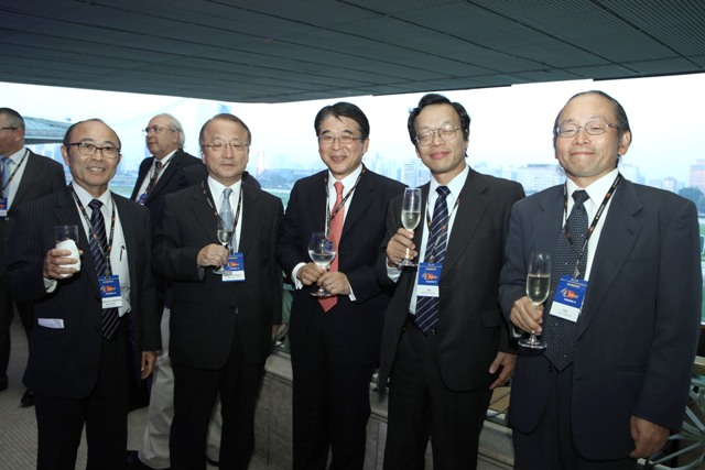 左から平田事務局長、伊藤 元社長、元ブラジル横河役員のCarlos Fernandes Braz氏とジョージ・モリ氏