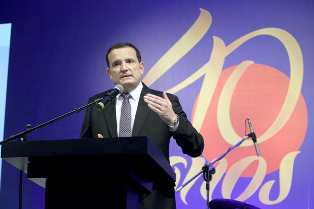 最初、同社の設立40年の歴史をビデオで紹介後に海堀会長が挨拶、続いて福嶌総領事、平田藤義事務局長、主要顧客のブラスケンやヴァーレの役員等がブラジルにおける工業振興および一般社会に多大な貢献を果たした事に対し敬意を表し今後の益々の躍進・発展を祈り祝辞を述べた。