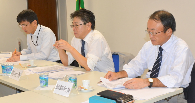 左から田中副部会長(日清紡)/横山部会長(オオミ繊維工業)/山本副部会長(東洋紡)