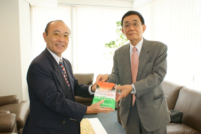 ブラジル経済の第一人者の鈴木孝憲氏が2011年1月10日に商工会議所を表敬訪問、応対した平田藤義事務局長に上梓した自著「2020年のブラジル経済」を会議所に三冊贈呈した。