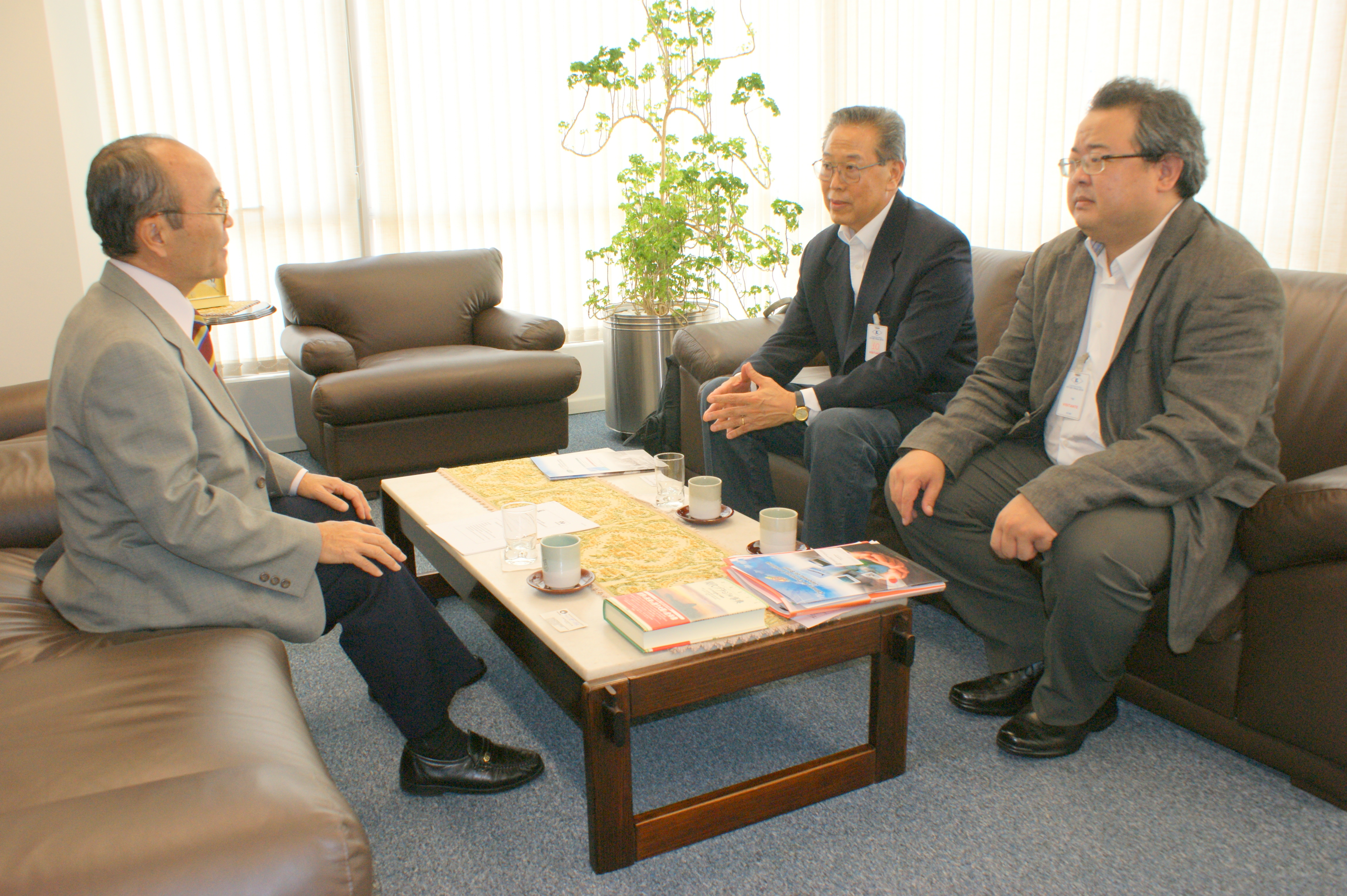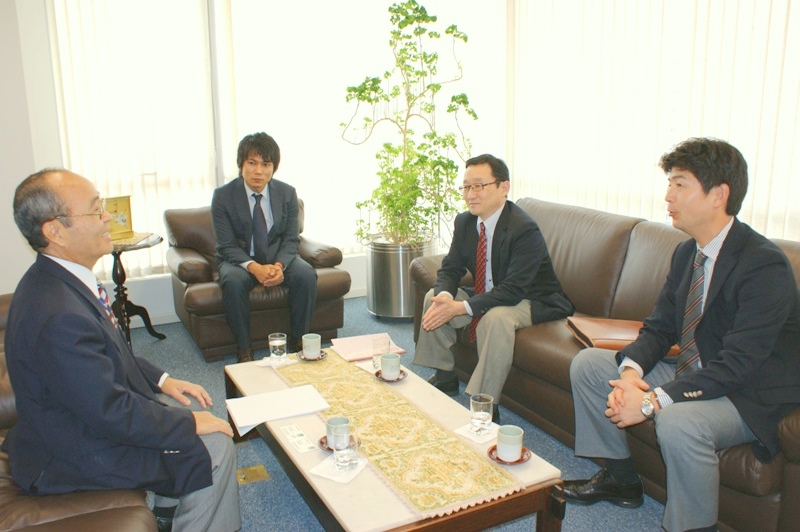 住友商事経営企画部の岡智部長代理、地域統括部の足立信夫部長代理並びにブラジル住友商事の坂東良亮取締役が2011年1月10日に商工会議所を表敬訪問、平田藤義事務局長が応対した。
