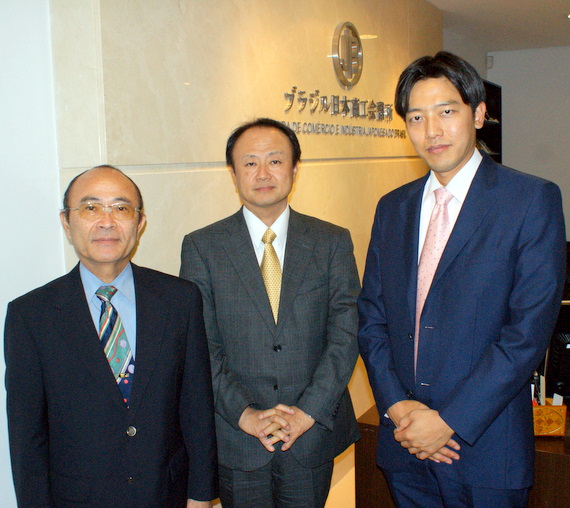 左から平田藤義事務局長/第一実業国際事業統括本部国際業務統括部の河内豊治部長/ブラジル第一実業の原拓也取締役(fotos Rubens Ito/CCIBJ)