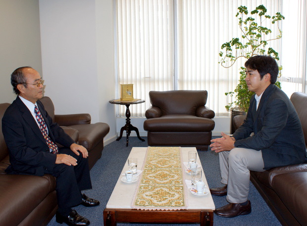 新日鐵総務部の水野達哉グループマネージャーが2010年12月1日の商工会議所を表敬訪問、平田藤義事務局長が応対した。