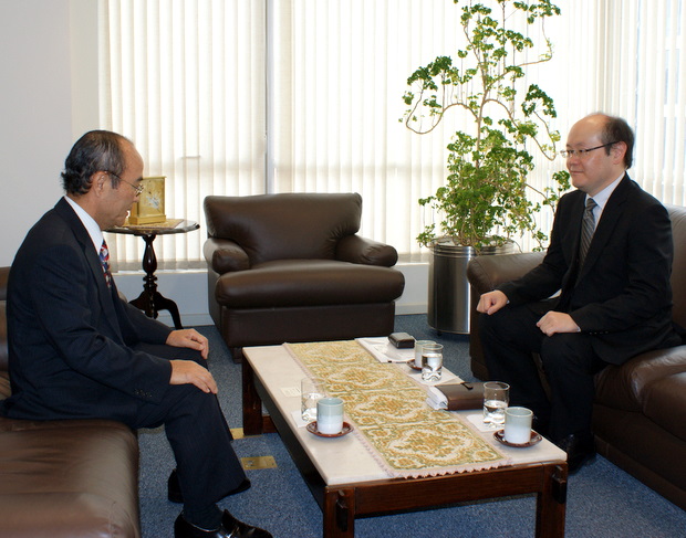 第一実業国際事業統括本部国際業務統括部の河内豊治部長、ブラジル第一実業の原拓也取締役が2010年12月2日に商工会議所を表敬訪問、平田藤義事務局長が応対した。