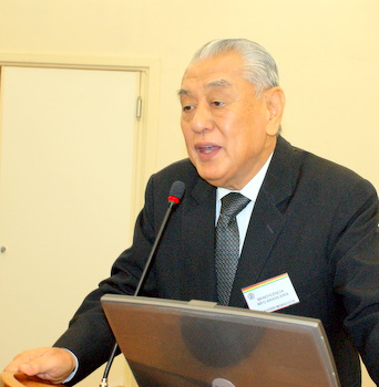 バーロス取締役の講演に先立ち中山立夫会頭を歓迎の辞を述べ、「世界を取り巻く環境とラテンアメリカ ~ブラジルが牽引 」と題して、今後の世界経済の見通し、先進国の国内総生産(GDP)は低成長で今後4年間の平均GDP伸び率は1.5%、発展途上国は5.9%、世界経済の中心は欧米からアジアとダイナミックな発展途上国へ移行、2020年にはG-7の世界に占めるGDPは32%に減少するが、エマージング7カ国は現在の28%から39に上昇すると説明した。