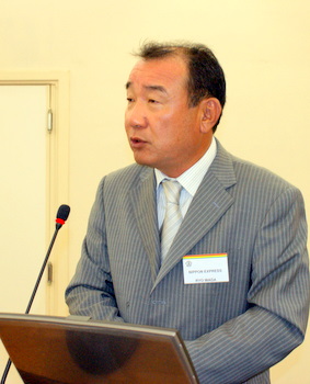 司会は平田藤義事務局長が務め、初めに講演者で特別ゲストのオタビオ・バーロス取締役、大部一秋総領事を紹介、代表者交代では在伯3年の三菱重工業の大隈広視社長が帰国挨拶、後任の西岡信之社長は社内では羨望の的のブラジルに就任できたことを着任の挨拶とした。