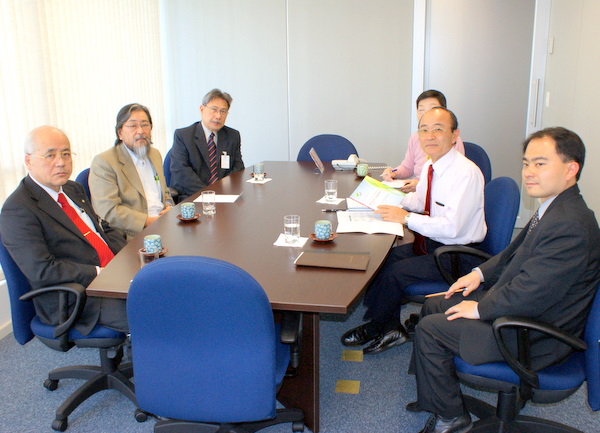 ブラジル日本研究者協会(SBPN 仁井山進会長)一行のサンパウロ大学解剖学部教授で日伯交流シンポジウム組織委員会の渡部一誠副会長、サンパウロ大学薬学部教授の佐藤直専任理事、佐々木弘一顧問は2009年8月6日に9月26日から28日まで開催される第2回日伯シンポジウムの打合せで商工会議所を表敬訪問、平田藤義事務局長、柴田千鶴子事業部主任、日下野成次総務担当と詳細に話合った。