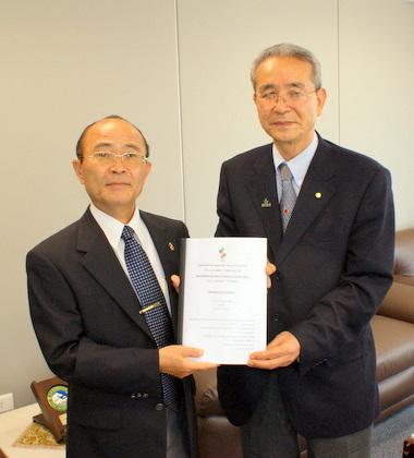11月10日にサンパウロ日伯援護協会の菊池義治第一副会長がふるさと創生協会は記念事業の21世紀の地域リーダー交流事業で21人の日本からの参加者を迎え、各地での日伯交流親善で実績を挙げ、来年はブラジル日系社会リーダーを日本に送り出す計画を持っているが、主要日系5団体(文協、援協、県連,アリアンサ、会議所)が管理する日伯修好100周年基金より3度の資金支援に対して、応対した平田藤義事務局長にお礼状を手渡し、関係者に対して厚く感謝の意を述べた。