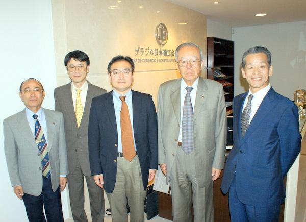 ブラジル東洋紡の河本暢夫社長が10月23日に商工会議所を表敬訪問、田中信会頭、平田藤義事務局長が応対した。