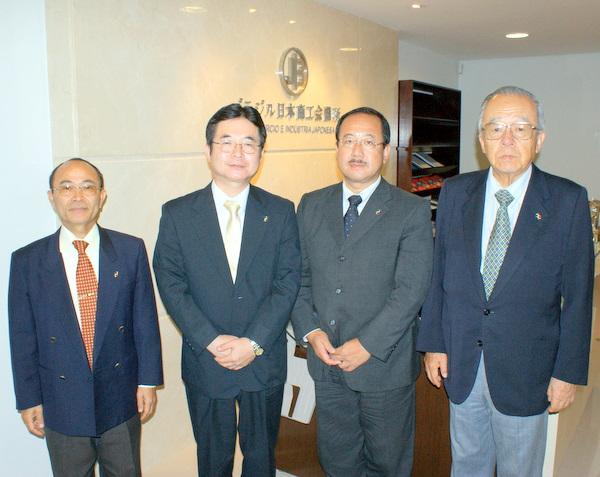 JICAブラジリア事務所の小林正博所長と後任の芳賀克彦新所長が10月21日に商工会議所を表敬訪問、田中信会頭、平田藤義事務局長にそれぞれ帰国挨拶、就任挨拶を行なった。