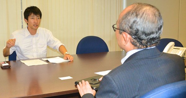 株式会社前川製作所グローバル販売ブロックグローバルコンポ販売センターの山田翔氏が2018年10月19日の商工会議所を訪問、応対した平田藤義事務局長は、1982年に設立されたJCI Brasil-Japãoの設立目的、活動状況などについて説明した。