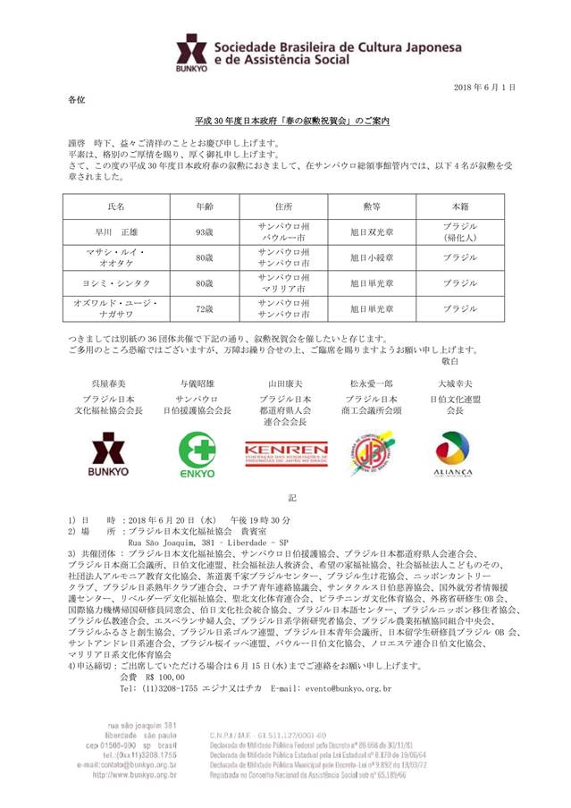 申込み:事務局カリーナ宛てにお支払いの上お申込み下さい(Av.Paulista 475、13階 TEL 3178-6240、secretaria@camaradojapao.org.br)。