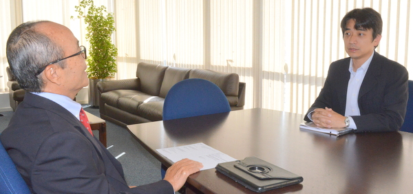 サンパウロ州カンピーナス市に本社を構えるIF CORPORATIONの岩田剛フラービオ氏が2018年2月8日に商工会議所を訪問、岩田剛フラービオ氏は、応対した平田藤義事務局長に産業用パネル並びに大型LEDの製造、産業向け施工サービスやコンサルサービス事業などについて説明、平田事務局長は会議所活動について説明した。