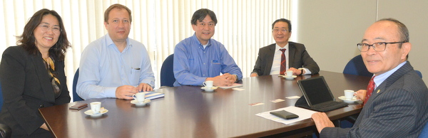 左手前から平田藤義事務局長/吉田章則調査員/ジェトロサンパウロの山本祐也ダイレクター