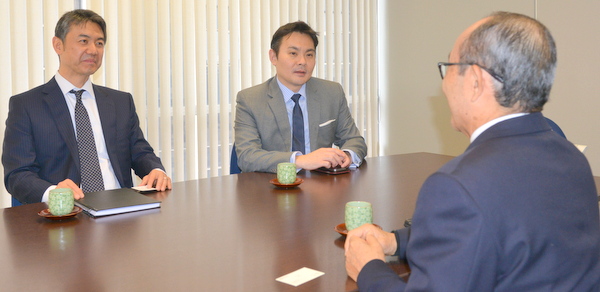 西村あさひ法律事務所からMattos Filho法律事務所に出向中の古梶順也弁護士が2017年8月10日に商工会議所を訪問、応対した平田藤義事務局長に帰国挨拶を行った。