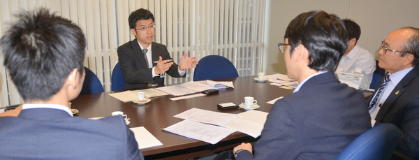 意見交換会では、商工会議所運輸サービス部会の細谷浩司部会長はじめ紫紺会のOB8人も参加、覚書署名式に至る経緯、ブラジルの学生との交換留学、日伯の架け橋になる人材育成、ジャパンハウスに対する連携支援、明治大学OBの支援点協力体制の構築、事務局設置、 インターシップ制度の活用、文化交流の活性化などについて、ざっくばらんに意見交換した。