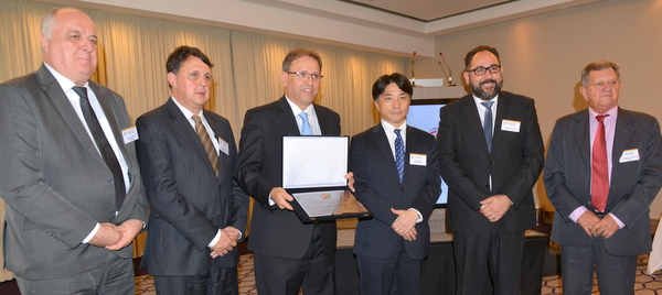 11月9日午後、大久保所長のジェトロサンパウロ事務所主催による中南米知財セミナーを 商工会議所大会議室で開催、日本国特許庁(JPO)調整課審査企画室の柳澤智也室長並びにETROサンパウロ事務所の岡本正紀 知的財産部長、JPO国際協力課の松原陽介 課長補佐(地域協力第二班長)が中南米における最近の知財の状況及びJPOの取り組みについて説明した。