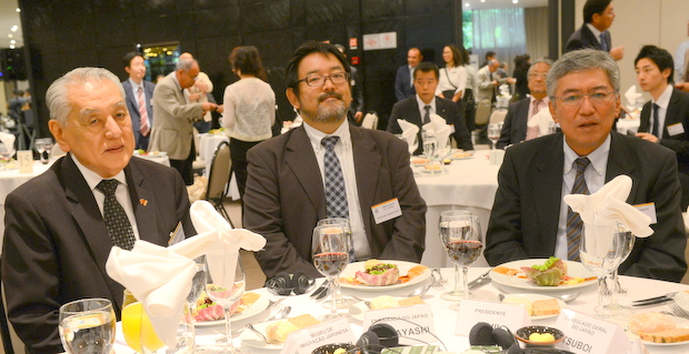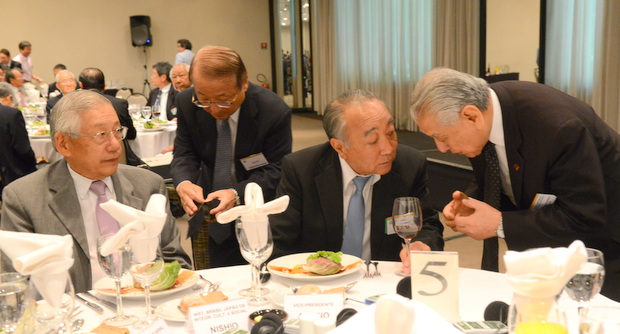 2月の懇親昼食会は、2014年2月14日正午から午後2時までチボリホテルに120人が参加して開催、司会は平田藤義事務局長が務め、初めに特別ゲストの在ブラジル日本国大使館の小林 和昭参事官、 森口 忠義イナシオ ブラジル日本文化福祉協会 移民史料館運営委員会委員長、ロベルト 西尾日伯文化社会統合協会会長/移民史料館運営委員会 副委員長、右近 昭夫ブラジル日本文化福祉協会 移民史料館運営委員会メンバー、遠藤 浩明 JICAサンパウロ出張所 次長、山下ジョージ文協 副会長、アンセルモ中谷アリアンサ 会長、山田 康夫県連 副会長、菊地 義治サンパウロ日伯援護協会会長、後藤 隆ブラジル日本商工会議所第8代会頭、貞方 賢彦ブラジル日本商工会議所第13代会頭、Marcos Suto JCIブラジル青年会議所 会頭、二宮 正人CIATE理事長、 板垣勝秀ブラジル日本語センター理事長が紹介された。