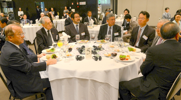 3分間スピーチでは、王 秀樹KPMGマネージャーが2013年度版の「ブラジル投資ガイド」発行について、ブラジルへの投資、事業設立、法人に対する課税、優遇措置などを網羅している出版物の発行について説明、板垣 勝秀 ブラジル日本語センター理事長は「ブラジル日本語センターの紹介」について、1985年に設立、会員は500人、事業内容として日本語教師の養成・研修、日本語学習者のための支援活動を行っているが、会員企業からの支援を要請した。