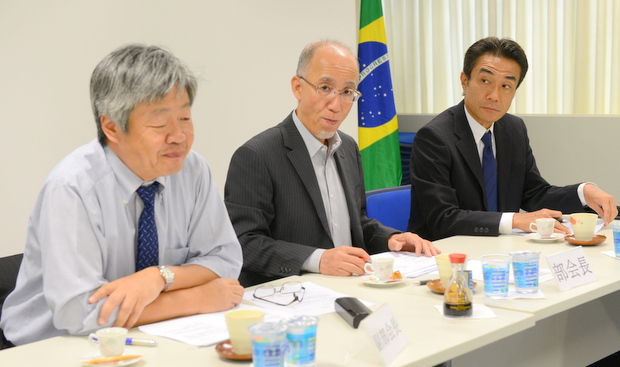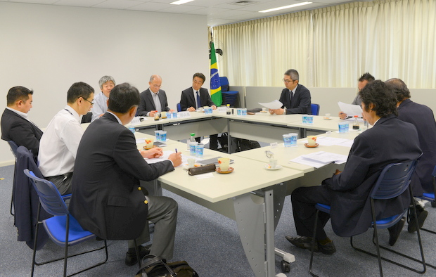 参加者は三上部会長(戸田建設)、南副部会長(デニブラ)、小橋川氏(ホス建設)、藤井氏(CGC )、森口氏(STARTS IMOBILIARIA)、紫牟田氏(Nicom)、稲井氏(Nagawa do Brasil)、遠藤副領事(サンパウロ総領事館)、 平田藤義事務局長、大角編集長